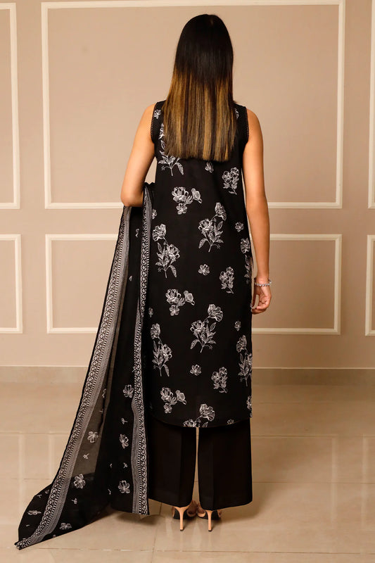 NUREH Black Lawn Embroiderd Three Piece NH-01