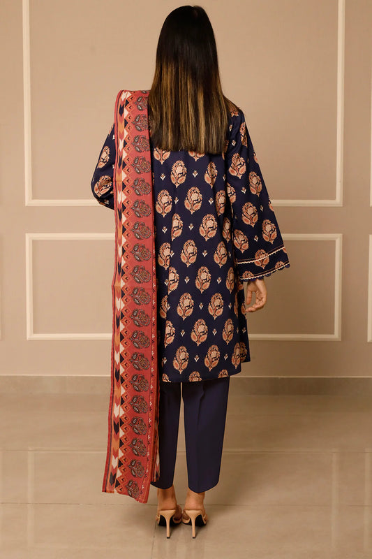 Maria.b 3 pc unstitched printed article with chiffon dupatta